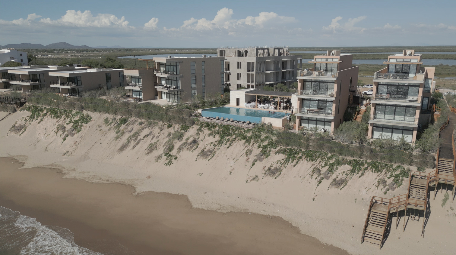 Punta Península Kino is a resort town master plan on a narrow peninsula between the Sea of Cortez, a UNESCO World Heritage marine region, and the protected Estero Santa Cruz (Laguna La Cruz) in Bahía de Kino, Mexico. A 9-meter-high consolidated dune defines the site, shaping orientation, movement, and the relationship between built form and natural systems.